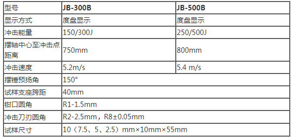 JB-300B/500B擺錘式半自動沖擊試驗機技術參數: