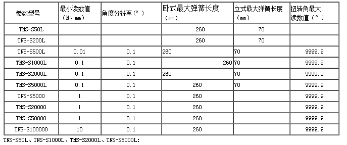 (2)TNS系列技術參數(shù):
